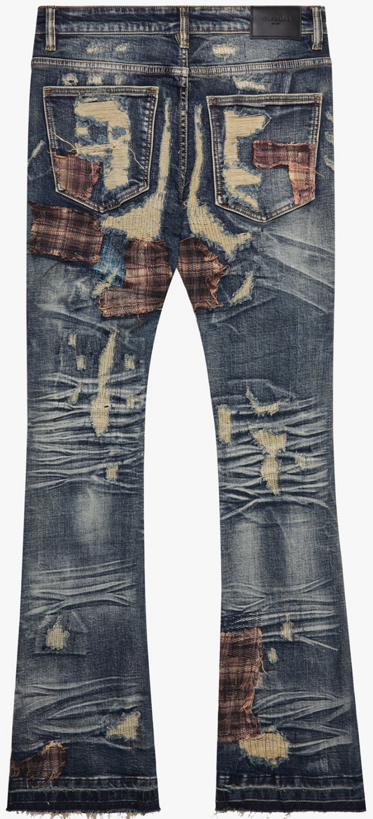 VALABASAS "Sigma" Medium Blue Stacked Flare Jean