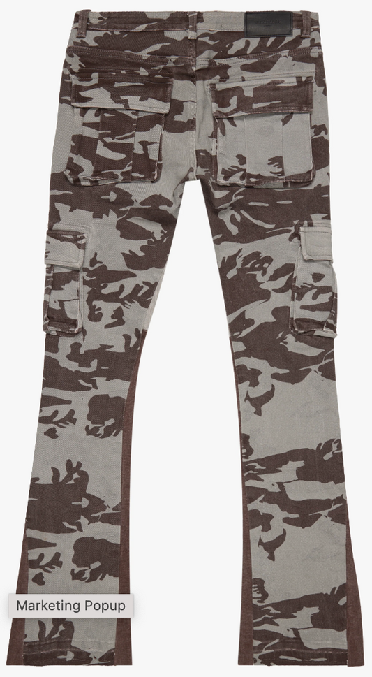 VALABASAS "Courage" Grey Camo Stacked Flare Jean